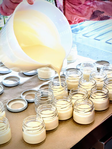 Wir stellen z.B. je nach Verfügbarkeit der Pflanzen, stellen wir gemeinsam eine Beinwellsalbe her, rühren uns ein Immunbooster Oxymel, setzen eine Tinktur an.......